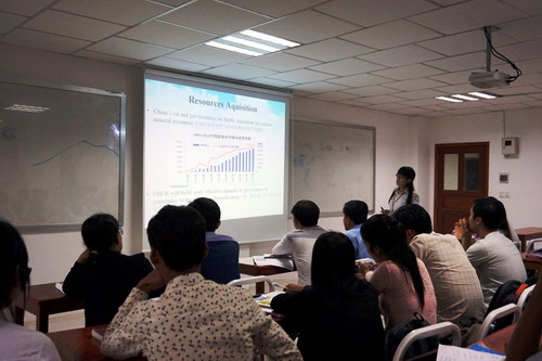 邢慧莹老师在随堂宣讲后现场和学生们进行了交流。其中一位大二学生说,“一带一路”思想对中柬友谊及经济共同发展有着重要意义,作为中文系的学生,这是一个很好的机遇,越多对中文专业人才的需求,我们的未来就越有发展空间。