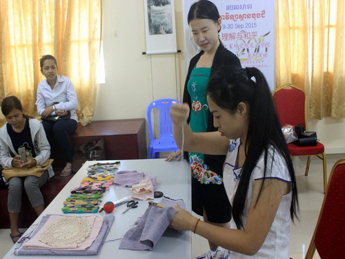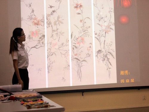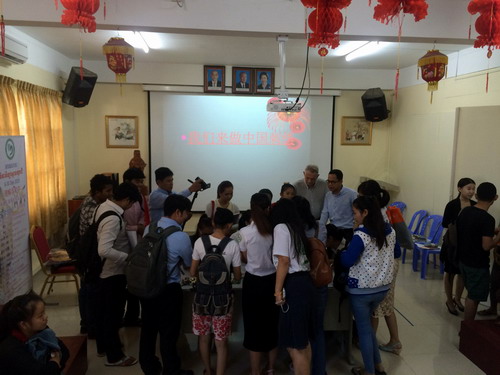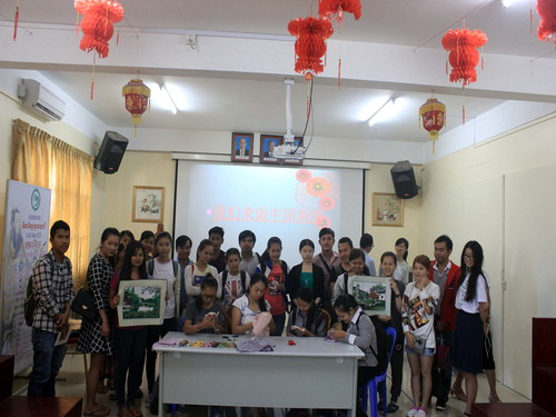 11月20日,由柬埔寨王家研究院孔子学院主办的“中国文化节系列活动”之“中国四大名绣”在孔子学院大楼多媒体教室举行。本次活动的主讲人为汉语志愿者教师岑菊妹,孔子学院师生约100人参加活动。