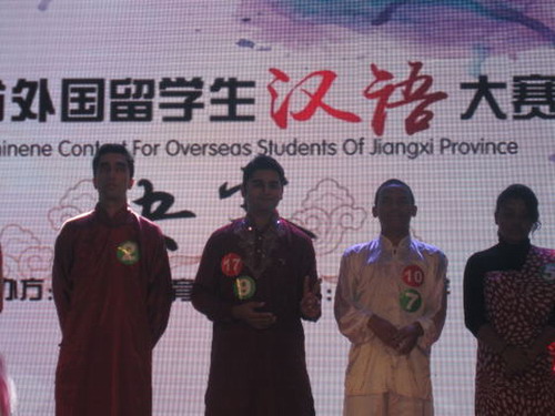 本次大赛由江西省教育厅举办、南昌大学承办,共有来自全省16所高校的70名选手参加。各校精心准备,积极参与,展示了较高的汉语水平和才艺。永利yl23411集团官网留学生Talha Ashar在预赛和初赛中一路过关斩将,凭借朗诵《天路见证中巴友谊》拿到了决赛阶段的入场券。在决赛中,又以情景剧《当我老了》赢得了评委和台下观众的热烈掌声和一致好评。