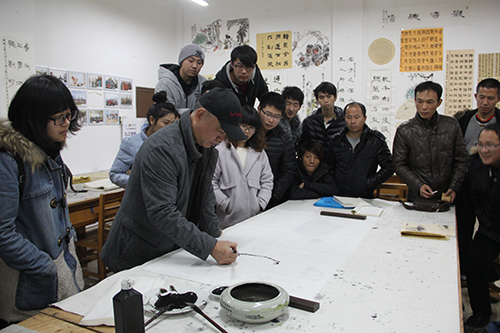 随后,帅安先生现场即兴为大家创作了一副山水画,他一边作画一边给大家进行技法上的讲解,使大家大开眼界,受益匪浅。
