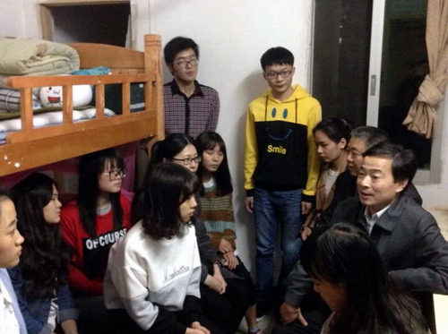 座谈会结束后,胡主任一行查看了实习生的生活环境和住宿条件。针对广州、福州不同的天气,叮嘱同学们要注意随时添衣保暖。