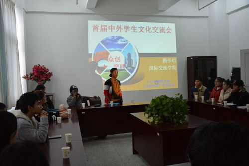 活动开始,双方学生介绍了各自国家语言的魅力,交流学习语言的经验。交流形式多样、活泼有趣。有精心编排的诗歌朗诵《再别康桥》,不同国家、不同地区的学生,用不同的语言分别朗诵,中国学生代表用他们的家乡话——九江话、河南话、浙江话等进行了别有特色的演绎,留学生代表用英语和汉语普通话进行了声情并茂地朗读。通过朗诵,让大家充分感受了不同国家不同语言对同一首诗,同一句话的不同表达。有自由交流时间,留学生们分享他们学习中文、英语等外语的经验,中国学生介绍九江的饮食文化与旅游文化,在这个交流平台,中外学生增进相互理解、深化彼此认同。