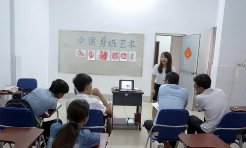 12月18日,柬埔寨王家研究院孔子学院暹粒吴哥高中孔子课堂举办“剪纸艺术”课堂文化活动,孔子课堂师生约50人参加了活动。