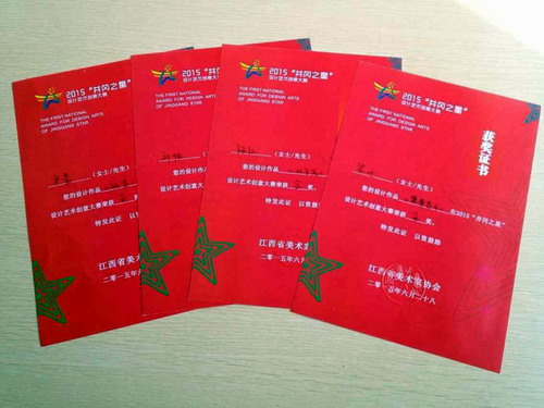 近日,从江西省美术家协会主办的2015“井冈之星”设计艺术创意大赛上传来捷报,永利yl23411集团官网艺术学院视觉传达设计专业梁丹、刘怡等学生作品获金奖2项、银奖10项、铜奖16项;张弘、吴畏、吴晨晖、刘云玲、何海燕等教师作品获金奖2项、银奖4项、铜奖3项;吴畏、张弘两位老师被评为优秀指导教师。