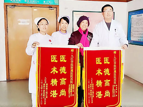 “是你们救了我的命,医生护士对我像家人一样,在我住院期间细心照顾,认真负责,把我从死神的手上给拉了回来。”近日,退休职工钱阿姨送来了两面锦旗——“医术精湛、医德高尚”,表达了她对临床医学院/附属医院神经外科医护人员的感激之情。