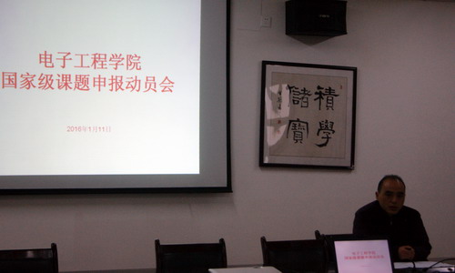 1月11日上午,电子工程学院在竞知楼904召开2016年国家级课题申报动员会。电子工程学院院长高小英和所有博士、副高及以上职称教师参加会议。会议由副院长张友木主持。