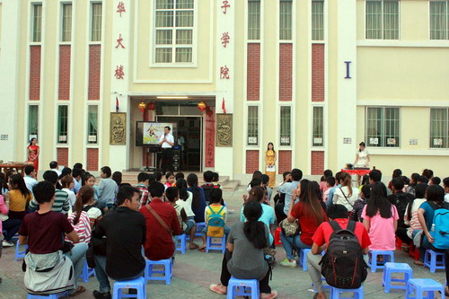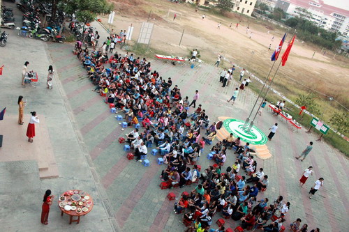 1月21日,柬埔寨王家研究院孔子学院举办2016年春节文化系列活动之四——“中国新年·食趣无限”为主题的新春中国美食节活动。柬埔寨王家研究院秘书长李树提龙阁下(HE LY Sothyrath),孔子学院院长谢莫尼勒阁下(HE CHEA Munyrith)、中方院长帅式毅先生,柬埔寨参议院秘书局培训办主任诺昆(NOP Kuch)先生等嘉宾应邀出席,孔子学院教师志愿者及学员300余人参加了本次活动。本次活动由九江学院选派的汉语教师志愿者方茜主讲并组织。