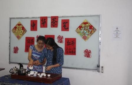 2月26日,柬埔寨王家研究院孔子学院暹粒省吴哥孔子课堂举行了中华茶艺文化展的活动。活动由暹粒吴哥孔子课堂九江学院选派的汉语教师志愿者钟丹丹主持,100余名学员参加活动。
