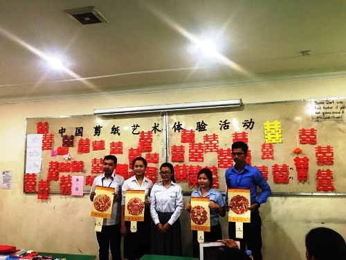 柬埔寨孔子学院金边国际大学汉语中心举办中国剪纸艺术体验活动
