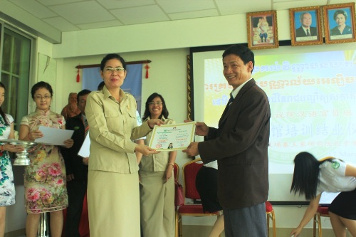 3月17日,为期3天的柬埔寨王家研究院孔子学院举办首期电子图书馆操作使用培训班举行结业典礼。柬埔寨王家研究院王家研究院副院长逊春文院士(H.E. SUM Chhum Bun),孔子学院院长、参议院顾问谢莫尼勒阁下(H.E. CHEA Munyrith),中方院长帅式毅先生,亚欧大学教务处罗森满副主任(ROS Samonn)、柬埔寨参议院秘书处图书馆馆长高万娜 (KEO Vannarith)等嘉宾出席结业典礼并致辞。