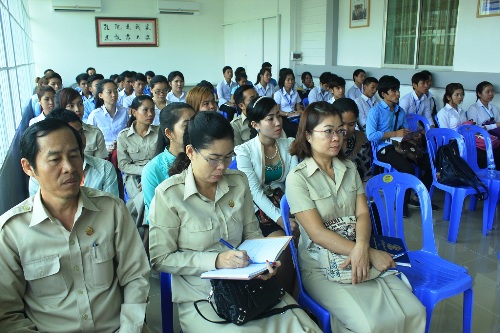 帅式毅院长鼓励大家要利用好电子图书馆,继续学习汉语,多到孔子学院本部来查询有关资料,希望不久将来柬埔寨也可以建立自己的电子图书数据库,让世界上更多的人了解柬埔寨优秀的历史、文化。