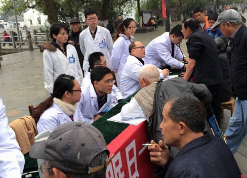 早上8:30,烟水亭广场义诊活动正式开始,过往市民纷纷围住展台询问,临床医学院/附属医院呼吸二科医护人员耐心地为现场的病友们解答疑惑,从睡眠障碍的发生、进程、危害及治疗措施等方面宣讲健康睡眠知识,并发放了相关宣传资料和调查问卷。现场人头攒动,参与义诊活动的病友和市民众多,气氛活跃。