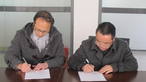 在九江乐胜运动器材有限公司,曹小华副院长首先表明了来意,一方面是想就材料化学专业学生实习、见习工作与企业方进行探讨,另一方面学院教师想就产、学、研方面的合作进一步磋商和沟通,希望双方能够利用各自的平台实现双赢。钟明华经理就实习生入驻的实习内容、时间安排、食宿管理和企业的产品、产品研发和应用等方面分别进行了详细的叙述,双方就实习实践和研发工作达成了初步的意向。会上,还举行了“九江学院化学与环境工程学院实践教学基地”的签约仪式,签约仪式上,双方均表示将充分发展挥好优势的互补性,希望以建立实践教学基地为切入点,逐步扩大合作范围,利用双方的优势资源,实现资源共享。