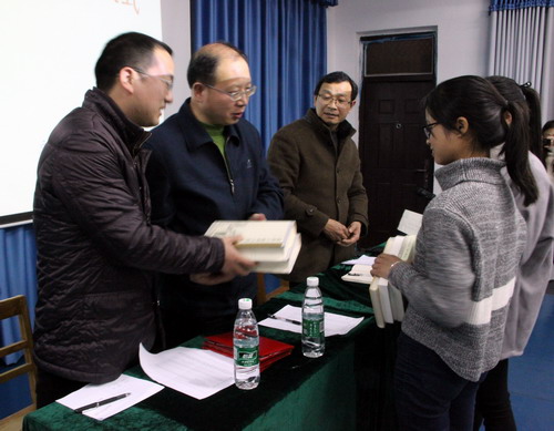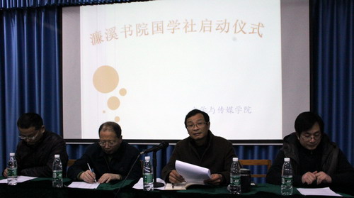 周子渊副院长宣读了濂溪书院国学社成员和指导老师名单。现场举行了国学社指导老师颁发聘书仪式和江西省国学知识比赛颁奖仪式。