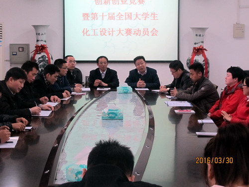 为了进一步提高学院教师指导学生参加各类创新创新竞赛的积极性,学生创新创业能力的培养,3月30日下午16:00,化环学院在向学楼五楼会议室举行了创新创业竞赛暨第十届全国大学生化工设计大赛动员会,学院党政领导、各科室负责人、各专业负责人以及第十届全国大学生化工设计大赛指导老师及代表队的全体成员参加会议,会议由团委书记刘小风主持。