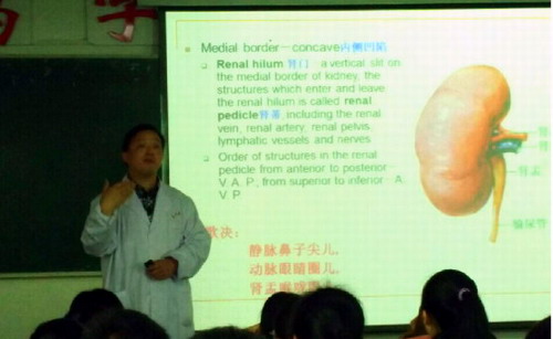 课后车院长对课程进行了评价。他说傅老师教学有三个精彩结合。一、中、英文合理结合,在讲授专业知识的同时,又逐渐提高了学生的英语能力。二、解剖基础知识与临床和生活密切结合,让深奥的专业知识易于接受,让枯燥的知识充满趣味性。三、教师的引导性与学生的能动性相互结合,充分发挥学生的学习能动性和教师的专业优势。