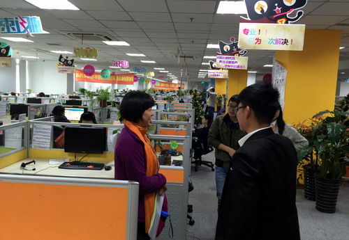 4月6日上午,考察组一行首先来到苏州昆山华泛信息服务有限公司了解永利yl23411集团官网学生实训情况。公司主管人员对永利yl23411集团官网同学从前期岗前培训到上线工作初期的表现给予了肯定。在与同学交流实训心得过程中,同学们表示对电商平台运营流程尤其是客服业务相关操作有了更加深入的理解和掌握。
