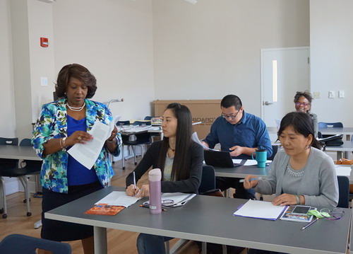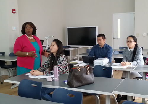 本次培训特别邀请到萨凡纳州立大学教育学院的Cora Thompson博士为主讲教授, Thompson 博士对美国大学和中学教师的评估系统和学生测评体系做了介绍。汉语教师们与Cora Thompson博士一起从教育学基本理论、教学策略、教学方法、激励理论与实践等几个主要方面展开学习和热烈的讨论。