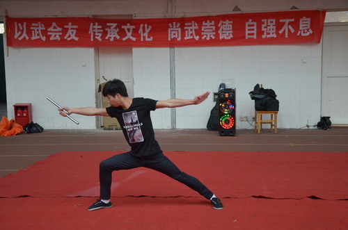 活动伊始,本次活动的负责人张鹏说:“中国武术是中华传统文化的重要一环,是我国民族体育的主要内容之一,是几千年来国民用来锻炼身体和自卫的一种方法,被视为中国文化之精神,故又称国粹。”用简洁的语言为大家简单介绍了武术在中国人生活中的作用。接着,两位同学为大家带来歌曲《情非得已》和原创吉他曲,在观众热烈的掌声中,本期“行知雅集暨传统武术竞赛”活动顺利开幕。