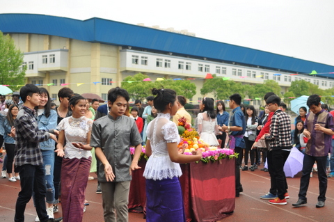 4月16日是柬埔寨新年的最后一天,永利yl23411集团官网来自柬埔寨的孔子学院奖学金生在学校北区田径场举行了庆祝活动,国际交流学院老师和来自各国的留学生以及中国学生共同庆祝柬埔寨新年。