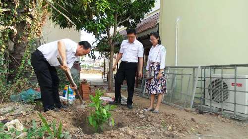 4月7、8日下午,孔子学院举行了扫尘和植树活动,谢莫尼勒阁下向大家详细介绍了柬中两国的扫尘和植树的文化,这都是典型的柬新年习俗;谢莫尼勒阁下和中方院长帅式毅先生在孔子学院共同种下了“友谊之树”,希望在孔子学院10周年之际能共同采摘果实,孔子学院的植树活动也会延续,来访的中柬两国嘉宾会陆续在孔子学院大楼旁共植“友谊之林”。