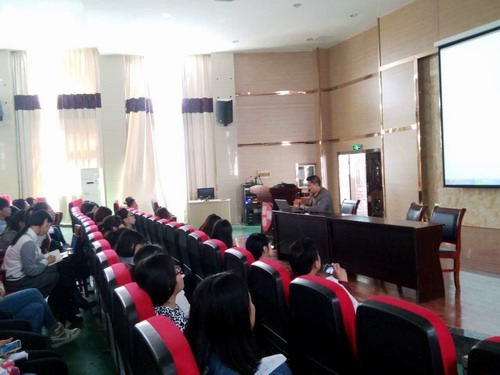 4月28日下午,外国语学院PUE跨境电商培训第六讲在香远楼三楼报告厅进行,课程仍然由浙江义乌诚商会的欧福元讲师讲授,PUE初级班的学生以及教师们提前进入报告厅静候欧讲师的讲座。