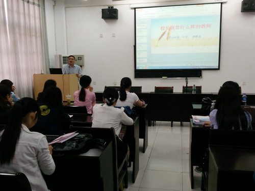 上午8:30,唐校长简单介绍了庐山区第一中学的师资情况,并由大家都熟悉的哈姆雷特“一千个人眼里就有一千个哈姆雷特”引出了自己对于现在的师生关系的理解:老师与学生因为是这种特殊的角色关系,所以老师与学生之间的感情没有太多的功利性,并且人是有感情的,特别是孩子;唐校长结合自身经历提出了对教师的要求:1、一名优秀的教师要有团队意识,团队意识之于老师,就像水之于鱼,这是由中学教师的特质所决定的,教师要学会增强自己的团队意识、合作精神;2、一名优秀的教师要有较强的执行力,执行力是个人成才的关键,教师要学会如何提高自己的执行力。最后,唐校长分享了自己在执教过程中的亲身经历,并通过事例说明为什么做比说更重要。