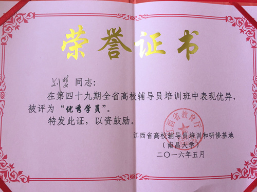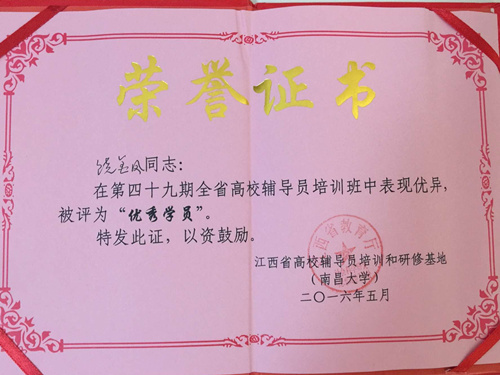 5月9日至13日,省教育工委和省教育厅主办的江西省第四十九期高校辅导员培训在南昌大学前湖校区举行,永利yl23411集团官网土建学院辅导员刘梦、饶金凤与来自全省85所高校的125名辅导员参加了此次培训。