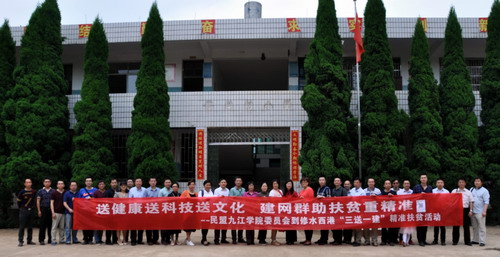 在全市统一战线“同心·精准扶贫行动计划”启动后,5月14日,民盟九江学院委员会一行30余人,在民盟九江市委常委、九江学院主委梅龙宝的带领下,第一时间来到修水县西港镇佛坳村开展“三送一建”精准扶贫活动。本次活动得到九江学院党委统战部、民盟九江市委、民盟修水县支部的高度重视和大力支持,民盟九江市委专职副主委张志超全程参与并指导工作,修水总支主委陈荣霞带领支部盟员给予大力支持和无私帮助。
