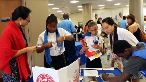 这是萨凡纳州立大学孔子学院第一次受邀在本地社区中学参加活动。Calvary Day School成立于1961年,是萨凡纳市较早成立的从小学到高中的完全中学之一。萨凡纳市公立学校联盟负责萨凡纳市公立中小学的教学指导评估工作。通过参加各类社区活动,萨凡纳州立大学孔子学院为越来越多的当地居民所了解,历史悠久的中国语言和文化也得以通过孔子学院这个平台向更多的美国民众展示。