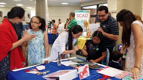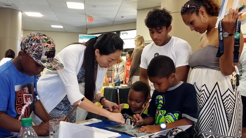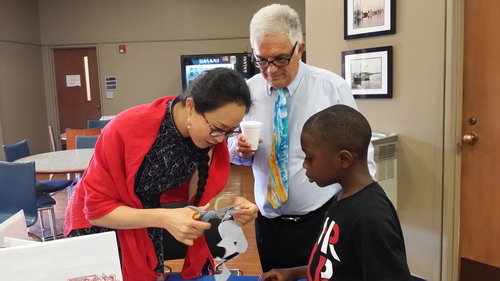 汉语教师们向来参加活动的学生和家长们介绍了萨凡纳州立大学孔子学院的基本情况和为当地社区居民提供的具体服务项目,并详细介绍了暑期汉语教学和文化活动的相关情况,邀请他们来参加本学年将要举行的系列活动。汉语教师同时为来参加活动的学生和家长介绍了中国的剪纸和书法艺术,并向大家展示了部分作品。很多美国学生对于中国传统艺术很感兴趣,他们在老师的指导下,创作出了一些漂亮的作品,亲身体验了中国艺术的魅力。