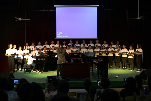 讲座中,陈一新先生主要围绕“大众流行钢琴音乐观”这个话题展开,他结合自身留学日本的经历及多年来对音乐的感悟,理性分析国外音乐理念对于当今中国所处的音乐大环境的可行性。陈一新先生一直关注我国音乐教育事业,强调对古典功底的加强和对音乐基本素养的提升,并把即兴演奏和合唱进行了完美的结合。他还现场即兴演奏了一首他创作的《我只在乎你》,将讲座推向高潮。艺术学院合唱团的《让我们荡起双浆》、《我只在乎你》、《每当我走过老师的窗前》和《心墙》,以及九江市浔庐合唱团表演的《月亮代表我的心》和《爱的奉献》等合唱表演,精彩演绎了陈一新老师的改编的作品,深深地打动了在座的每一个人!