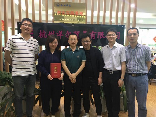 走访期间,学院与金华微盟信息技术有限公司、杭州洋尔贸易有限公司两家公司签定了创业实践教育基地协议,聘请了赵鑫、陈娟两位创业优秀校友为学院创业指导老师,黄伟书记代表学院,为两家公司授牌,为两位导师颁发了聘书。