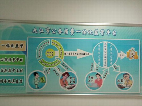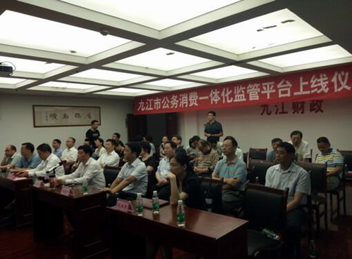 6月1日,九江市财政局会议室举行了隆重的九江市公务消费一体化监管平台上线仪式,九江市市委常委、纪委书记黄赛荣、九江市财政局、统计局、教育局等20多家单位负责人和财务人员参加,九江市第一张经过系统的一体化监管审核的三公消费支付令正式开出。