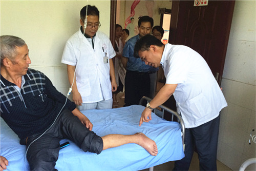 专家一行受到了马回岭中心卫生院徐尚华院长和医护人员、患者及家属的热烈欢迎。到现场问询就诊者众多,专家们仔细询问患者情况,耐心提供健康咨询,为患者讲解日常疾病预防及保健知识;外科专家还与马回岭中心卫生院医生们一起为患者做清创等治疗,前往病房为疑难病患者的救治进行指导。刘英明书记深入卫生院病区耐心为患者进行检查,并给予专业的诊疗指导意见。活动当天共提供了健康义诊300余人次,得到了当地广大群众一致好评。