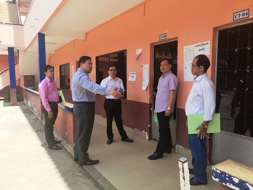 7月22日,柬埔寨王家研究院孔子学院院长谢莫尼勒阁下(H.E. CHEA Munyrith)、中方院长帅式毅在西部大学金边分校经理才诺特莫尼(CHHAY Rothmony)的陪同下,赶到柬埔寨西部大学(磅湛省),商谈合作开办磅湛省汉语中心有关事宜。西部大学(磅湛省)副校长何塔吴提(HOK Thavuth)一行会见并压谈。