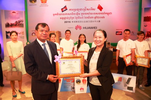 柬埔寨旅游部部长唐坤阁下(H.E. THONG Khon)、中国驻柬大使馆政治处程洪波主任出席并为获奖选手颁奖。