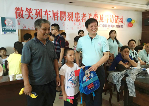 张志平院长向在场的每一位患儿赠送了书包和慰问金,祝愿他们健康成长。张院长说,通过寻访和与患儿家属交流,了解到手术取得良好效果,看到患儿及家属露出灿烂的笑容,这让他感到十分欣慰。他表示,今后临床医学院/附属医院将继续为更多患儿做好服务,让更多的贫困地区唇腭裂患者,尽早达乘上幸福健康的“微笑列车"。