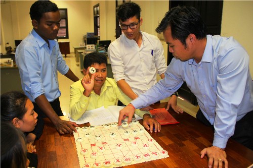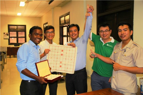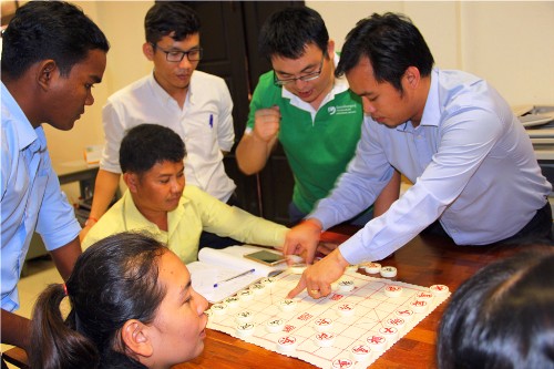 在了解中国象棋的初步知识后,学员们热情高涨,跃跃欲试,不一会儿就开始布阵下棋。对阵中,学员欧文题(MR.BUNNTHY NGORN)凭借“马踹车”“连环炮”等几手高招连杀对手,最终赢得了冠军。学员欧分题热爱中国文化,自官员班成立以来一直坚持学习汉语,对中国文化有一定的了解,他将于本月15日至17日赴中国河南省参加中国象棋有关活动。