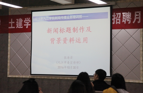 30日下午2:00,“新闻标题制作和背景材料运用技术”专题讲座在望庐楼101教室准时开讲。本次讲座由永利yl23411集团官网优秀校友、九江市委宣传部网络研究中心副主任张海岩主讲,同时,张海岩还曾是07届校报记者团团长。