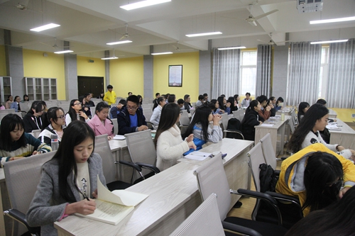讲座最后,罗娜老师跟学生互动过程中,学生把目前生活迷茫状态和不解都与老师分享,同时,罗纳老师也与同学们分享在自己人生碰到的事情和解决方法。最后讲座结束,学生与老师交谈自己的困惑,并签名留书送给大家做纪念。于此,当天上午讲座在大门口合影留念结束。