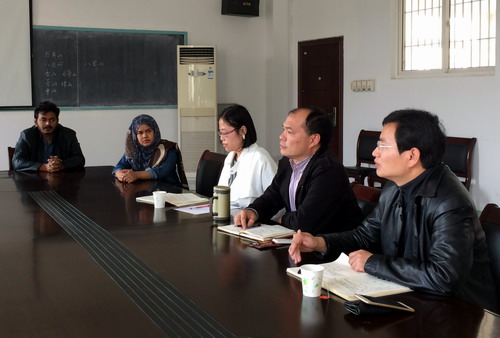 帅式毅首先做了自我介绍。在了解了外籍教师在九江学院的工作、生活情况后,帅式毅提出了三点希望,一是希望外籍教师们能充当桥梁作用,为他们所在国和中国的民间交流牵线搭桥、为九江学院和其毕业的大学牵线搭桥、为其所在国人民和中国人民的友好牵线搭桥,尤其是充当九江学院的友谊使者,多介绍好的教师来九江学院任教,多介绍好的学生来九江学院留学;二是与国际交流学院的师生多分享。分享其所在国的文化、多了解中国的文化,分享其学识、经验、观念;三是希望外籍教师们为国际交流学院的教学工作多提宝贵意见,国际交流学院将把大家的意见和建议编辑成小册子,供其他教师借鉴和交流。