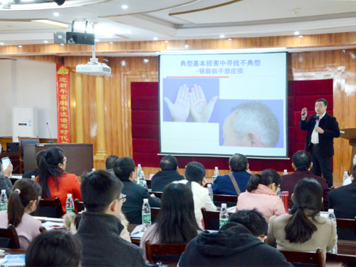 本次会议邀请了国内皮肤科知名专家,就当前皮肤病学业界研究的热点问题进行专题演讲。第三军医大学西南医院郝飞教授、中国人民解放军195医院张禁博士分别从拓展皮肤科临床医师的诊疗思维;结缔组织疾病、寻常性银屑病的诊疗方面展开深入细致的专业剖析。昆山经济开发区总医院高启发主任,带来了精彩的临床病例分享。临床医学院/附属医院皮肤科宋秋荷主任演讲,就过敏性紫癜治疗中的困惑及难点进行了深层次分析梳理,并与在场专家互动交流,气氛热烈。与会者专家进行了深入的交流和探讨,共襄学术盛宴,受益良多。