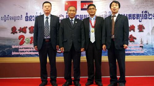 闭幕式上,柬埔寨副总理、柬中友好协会会长艾森沃阁下致闭幕词,他高度评价了中柬关系,对柬埔寨孔子学院在中柬友谊、民心相通以及文化交流领域所作出的突出贡献给予充分肯定。艾森沃会长向王贤淼颁发了“中柬友谊荣誉勋章”,向王贤淼、夏仕颁发了研讨会主题报告“感谢证书”,向梅龙宝颁发了“柬埔寨孔子学院客座教授”证书。