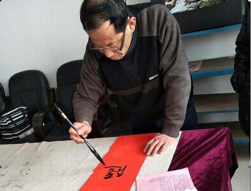 活动现场,红幅铺展,狼毫浸墨,秀笔一挥,妙句成双;笔锋婉转处,浓墨飘香;龙飞凤舞时,春意盎然。