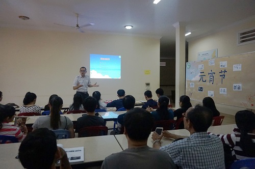 正值一年一度的中国传统节日----元宵节来临之际,2月10日下午,柬埔寨王家研究院孔子学院西哈努克省高级中学汉语中心举办元宵节庆祝活动。此次活动由汉语中心负责人李智老师主讲,西哈努克省教育厅林江老师(Lim Kheang)及汉语中心师生共50余人参加。