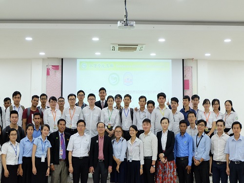 3月2日,柬埔寨孔子学院亚欧大学中文系举办了HSK(汉语水平考试)、HSKK(汉语水平口语考试)以及2017年孔子学院奖学金宣讲会。柬埔寨王家研究院孔子学院院长谢莫尼勒(H.E.CHEA MUNYRITH)阁下、亚欧大学校长谢索皮(CHEA SOPHEAP)博士莅临会场。孔子学院教师户社芳、欧阳娟为本次活动的主讲人,亚欧大学中文系师生近200人参加了本次活动。
