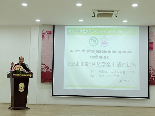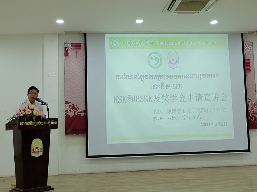 柬埔寨孔子学院亚欧大学中文系举办HSK、HSKK及2017年孔子学院奖学金宣讲会