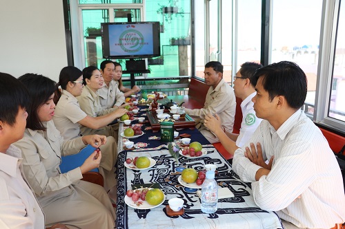 3月30日上午,柬埔寨参议院培训处主任农库克(NOP KUCH)先生、图书馆馆长科索万娜勒(KEO SOVANNARITH)女士等一行8人莅临柬埔寨王家研究院孔子学院,体验中国茶文化。柬埔寨王家研究院院长谢莫尼勒(H.E.CHEA MUNYRITH )阁下对农库克先生一行的到访表示热烈的欢迎。