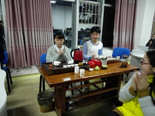 活动中,几位热爱茶艺的同学为来参加活动的师生读者烹茶,整个会场里茶香四溢。还有来自艺术学院的刘晓沁同学献上了一曲竹笛独奏《神话》,惊艳四座,为朗读会增色不少。